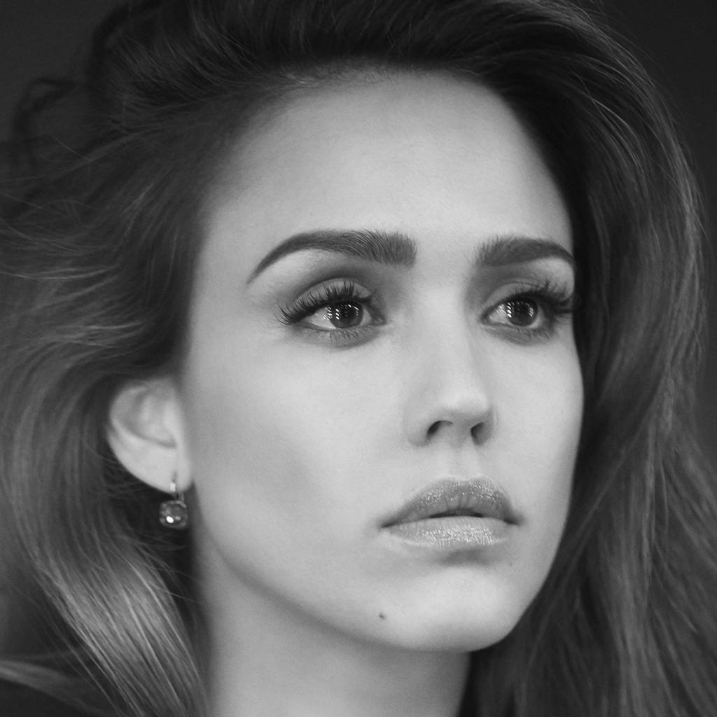 Обои Лицо актрисы Джессики Альбы черно белое фото