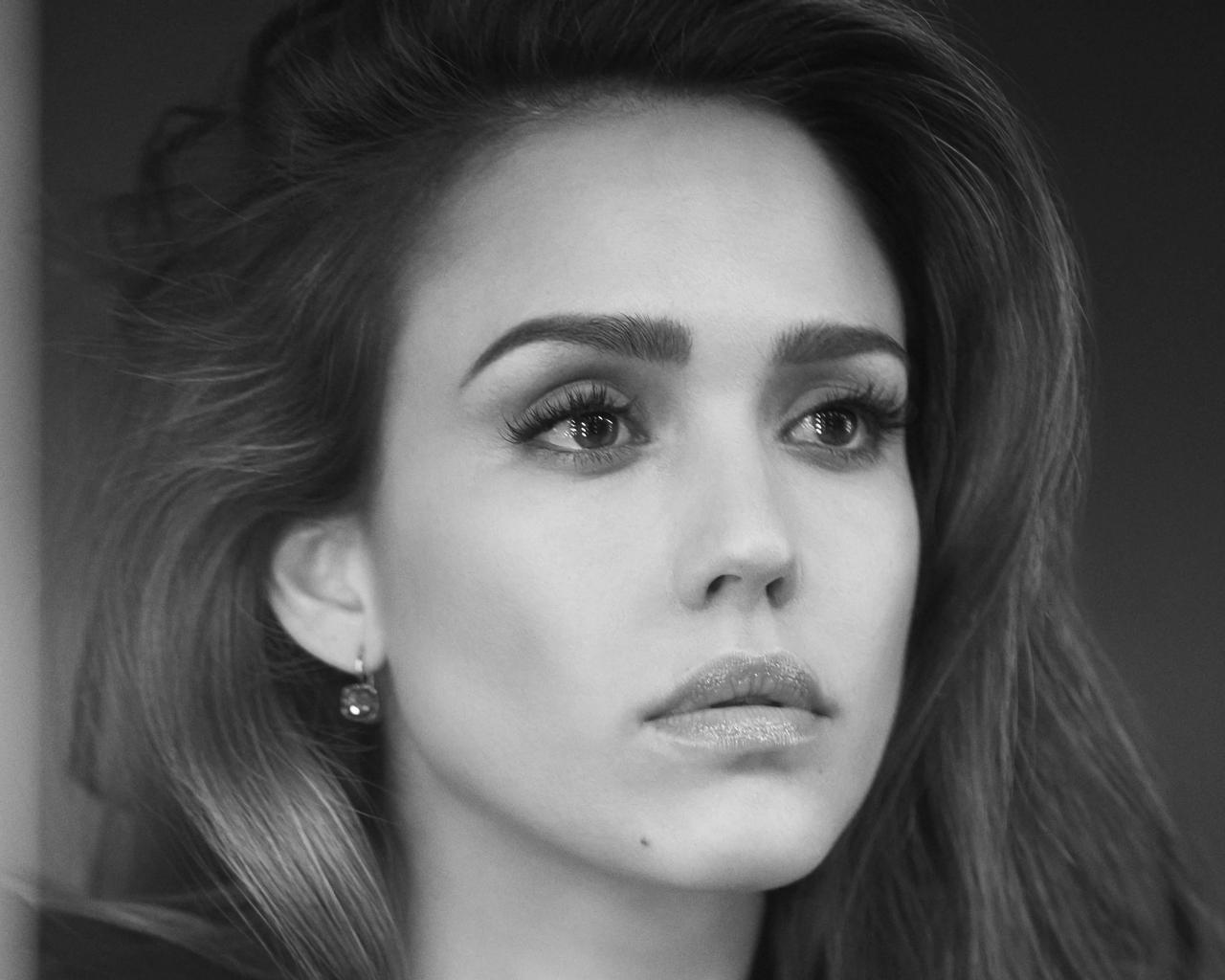Обои Лицо актрисы Джессики Альбы черно белое фото