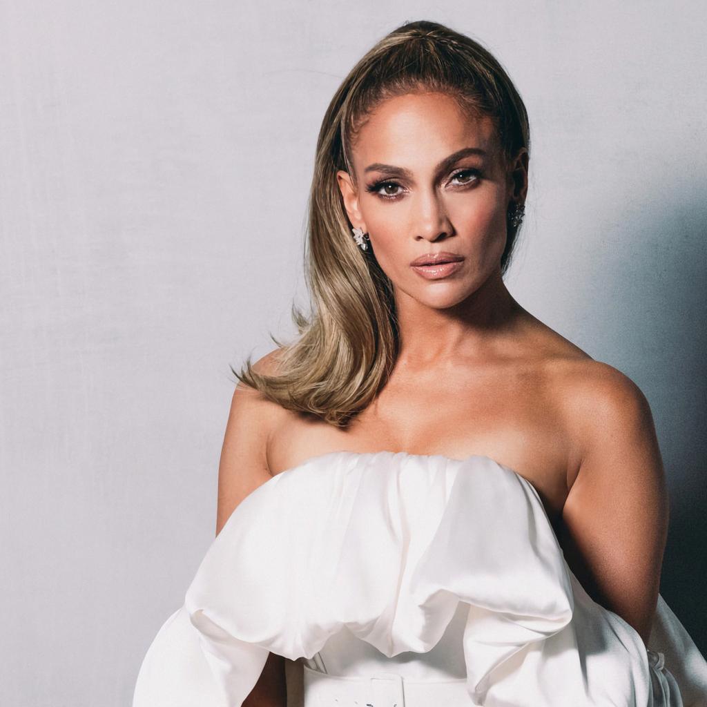 Обои Популярная актриса и певица Дженнифер Лопес на сером фоне