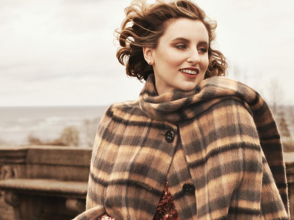 Обои Красивая женщина в пальто, актриса Мишель Докери