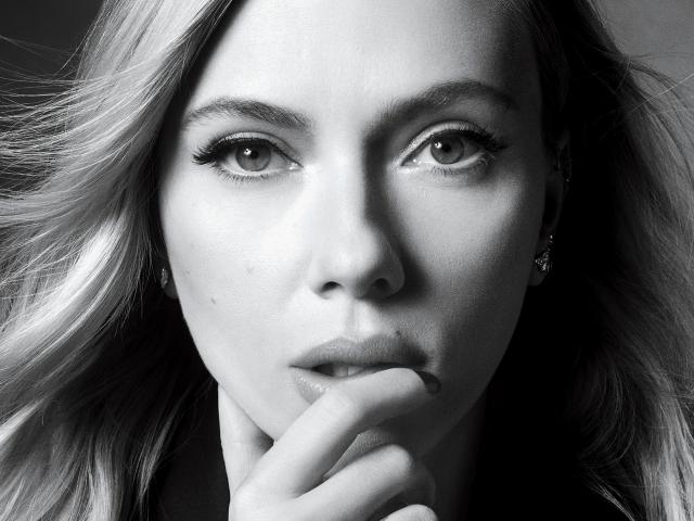 Обои Лицо актрисы Скарлетт Йоханссон черно - белое фото
