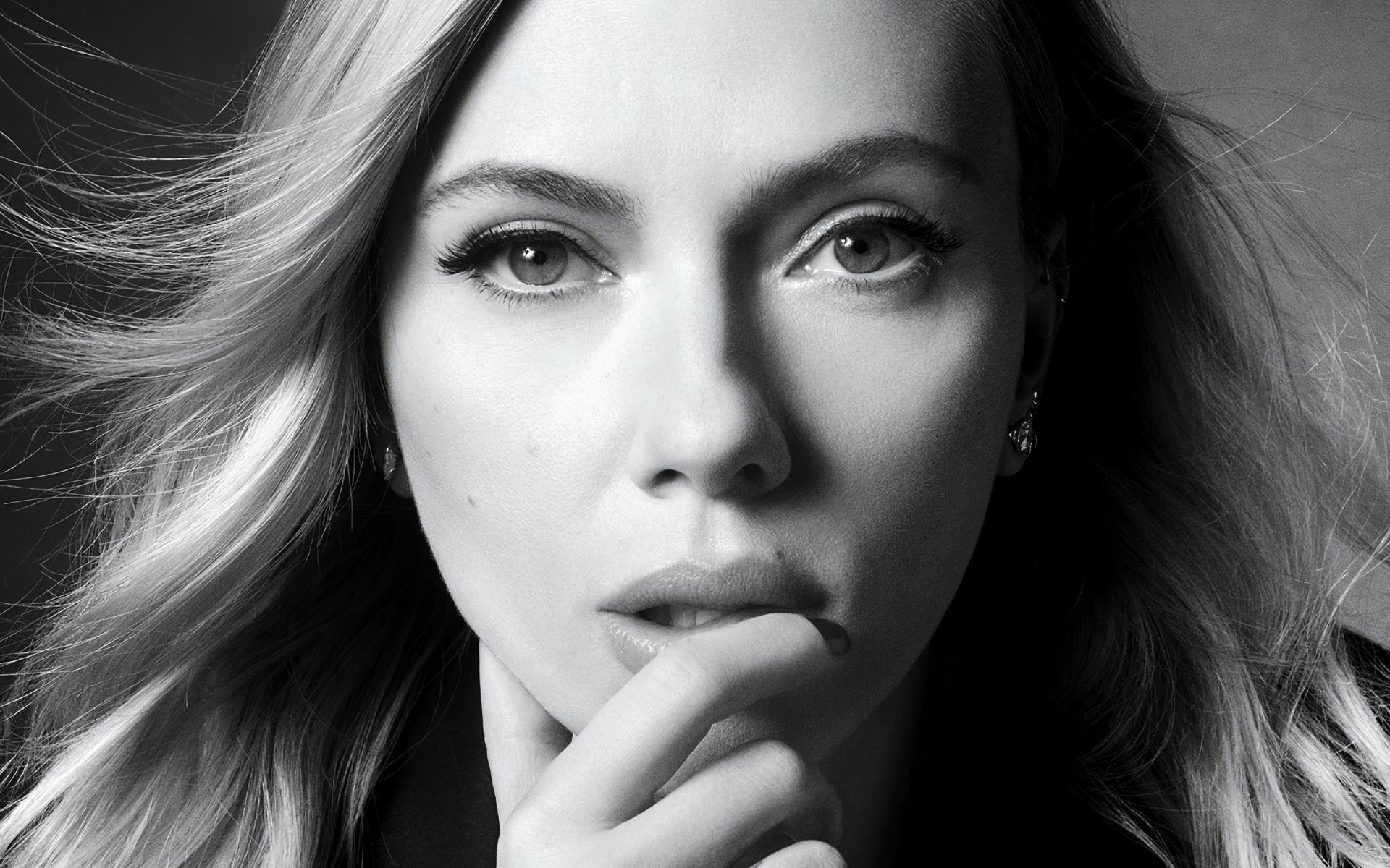 Обои Лицо актрисы Скарлетт Йоханссон черно - белое фото
