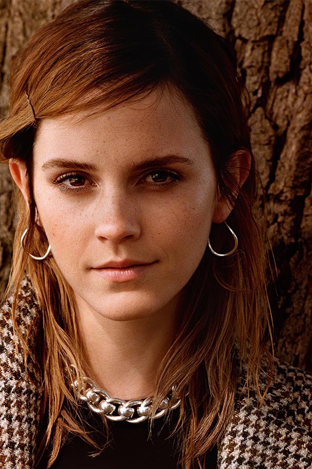 Обои Молодая кареглазая девушка, актриса Эмма Уотсон у дерева