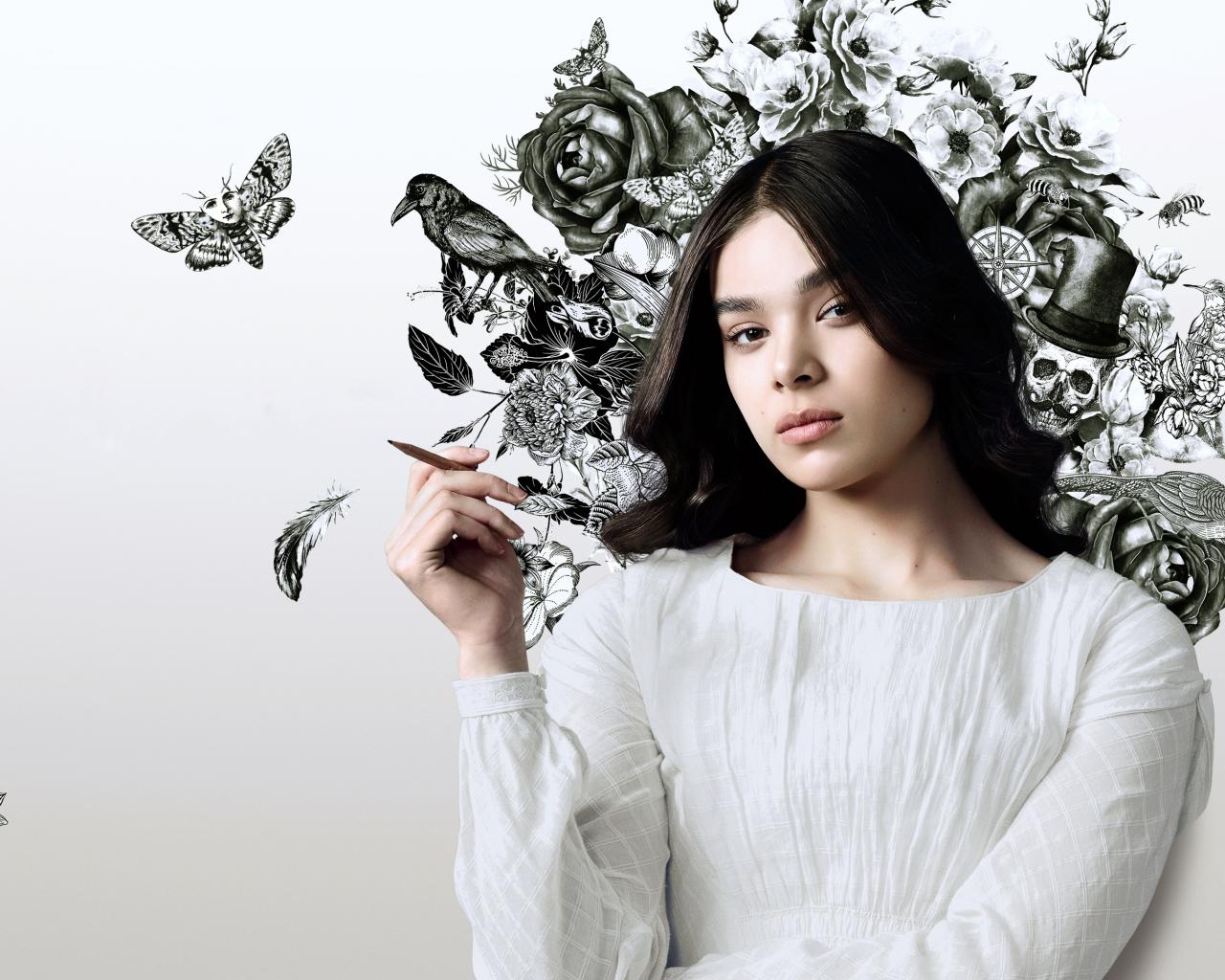Обои Актриса Хейли Стейнфилд на фоне рисунка на стене