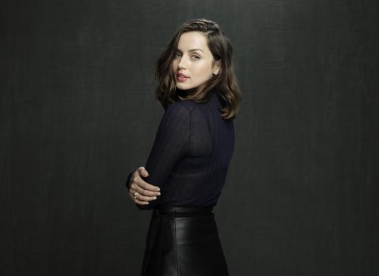 Обои Актриса Ана де Армас в черной юбке на сером фоне