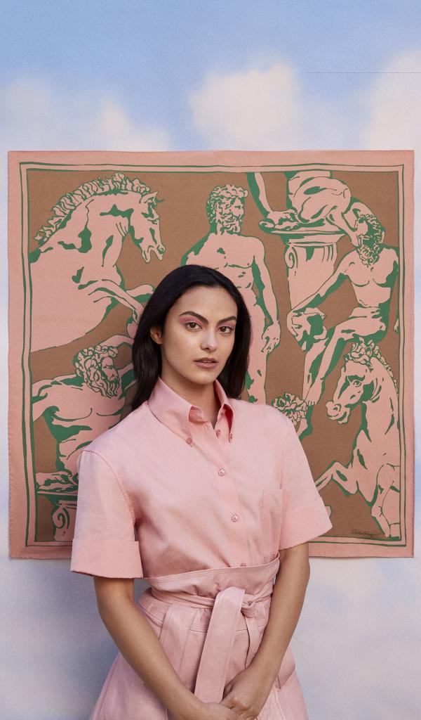 Обои Актриса Камила Мендес в розовом платье на фоне картины