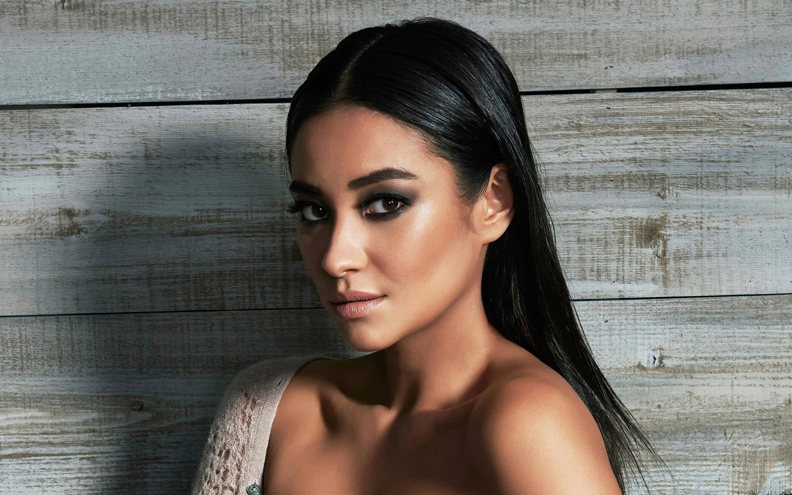 Обои Канадская актриса Шей Митчелл на деревянном фоне