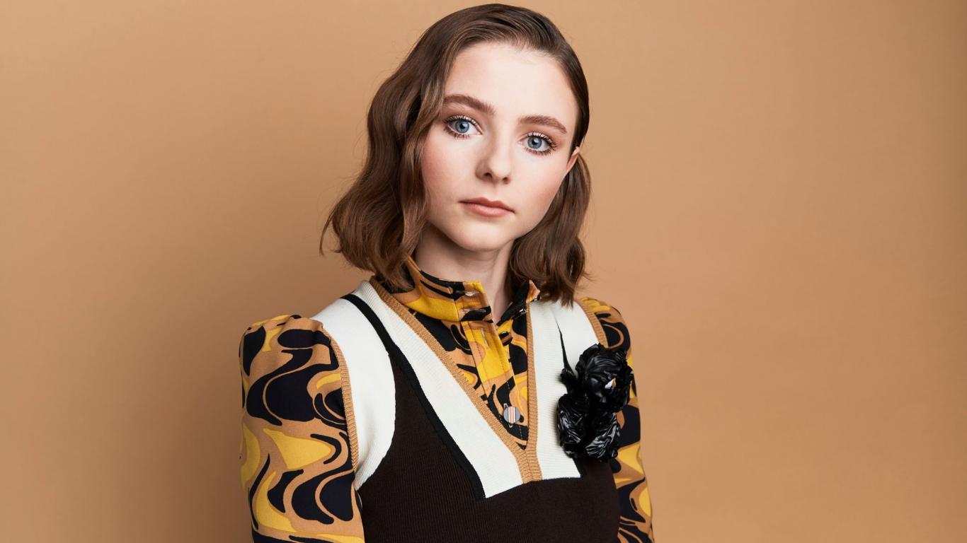 Обои Молодая актриса Томасин Маккензи на фоне стены