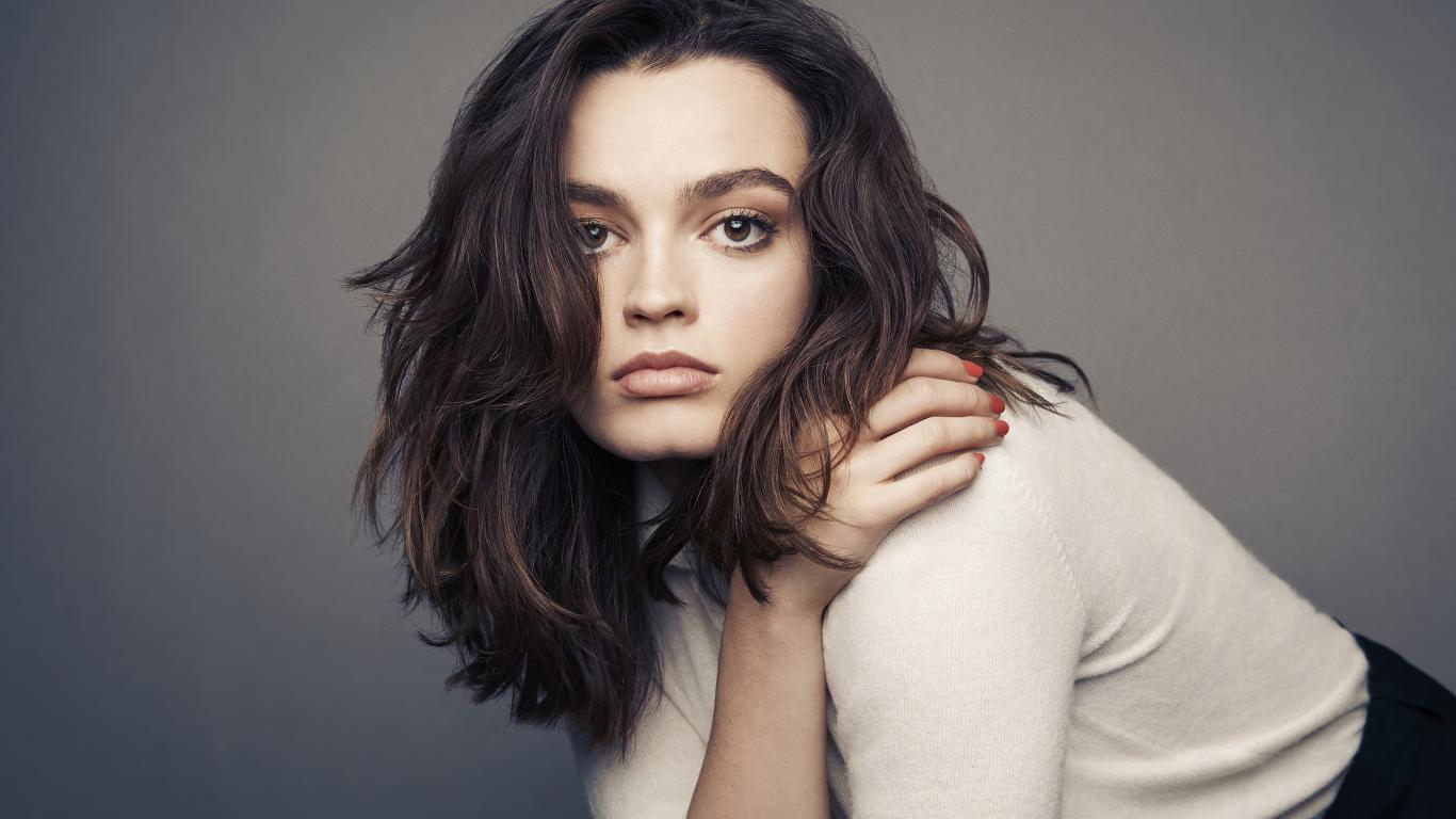 Обои Актриса Эмма Маккей на сером фоне