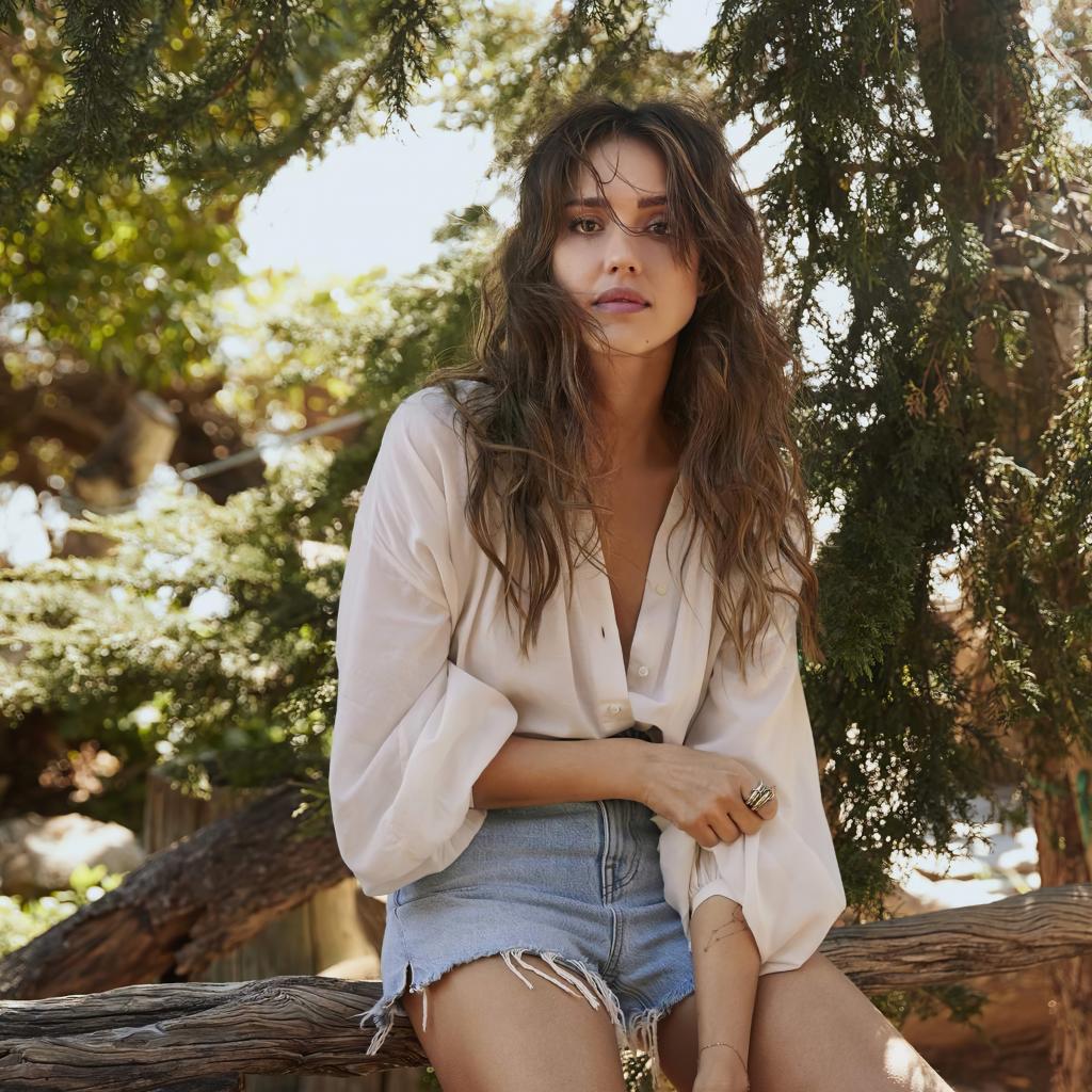 Обои Актриса Джессика Альба сидит на сухом дереве