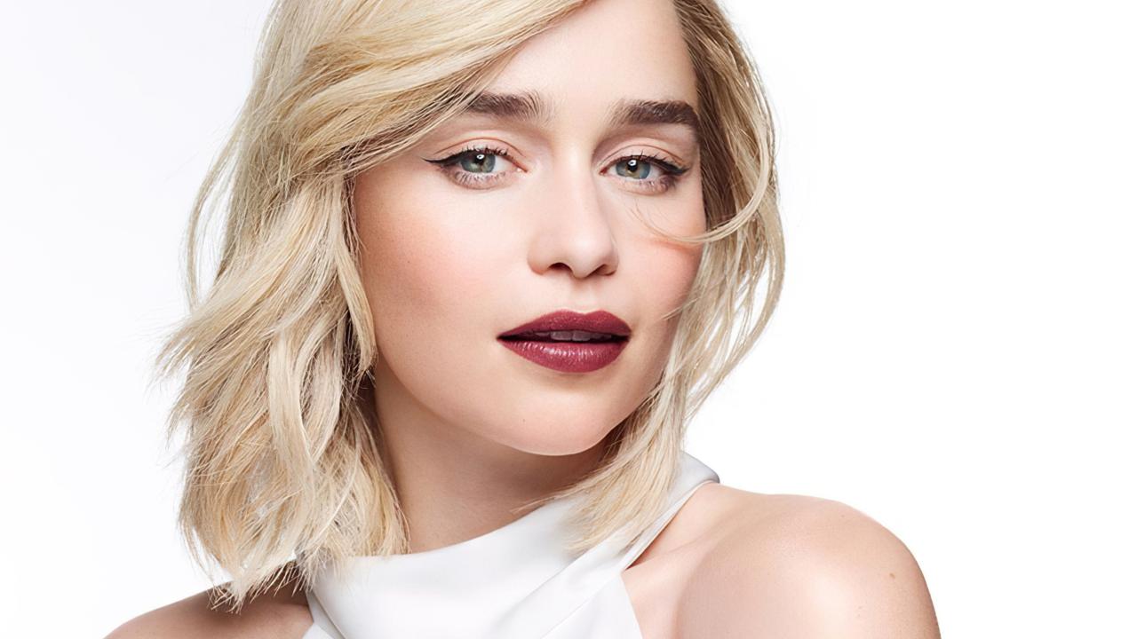 Обои Нежная блондинка, актриса Эмилия Кларк на белом фоне