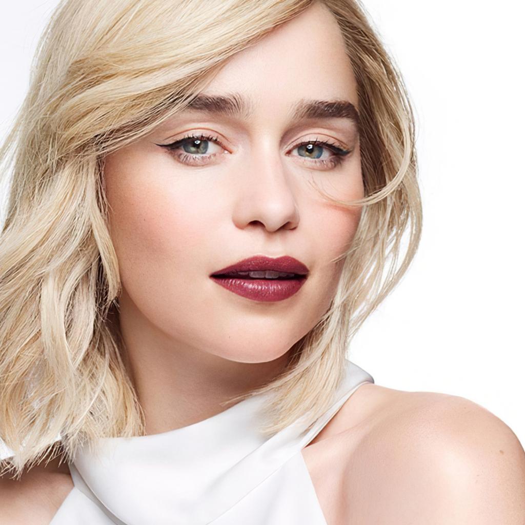 Обои Нежная блондинка, актриса Эмилия Кларк на белом фоне