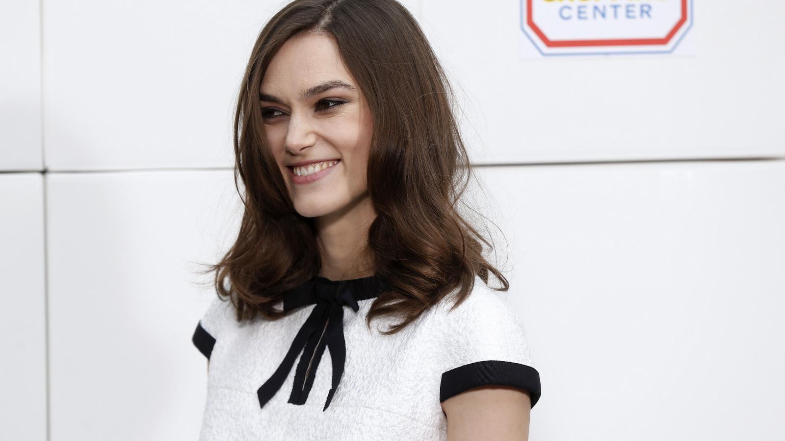Обои Улыбающаяся девушка, актриса Кира Найтли в платье