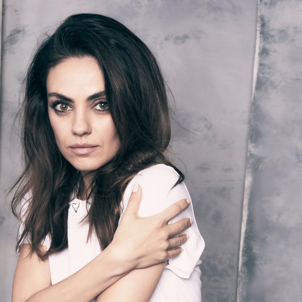 Обои Нежная девушка, актриса Мила Кунис на сером фоне