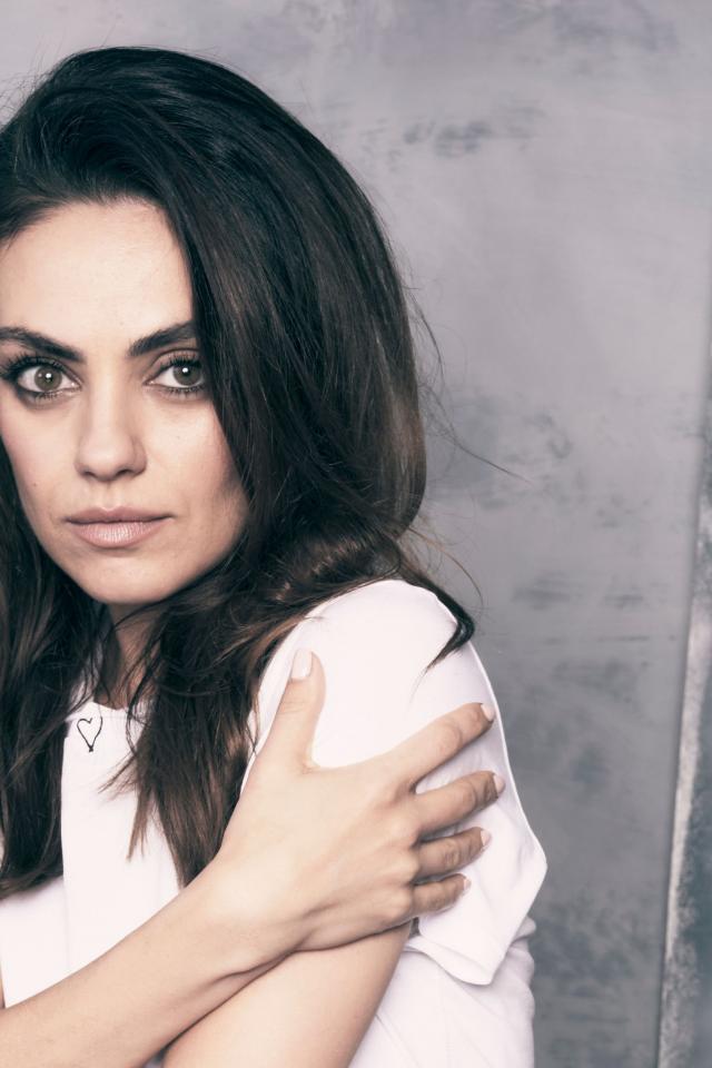 Обои Нежная девушка, актриса Мила Кунис на сером фоне