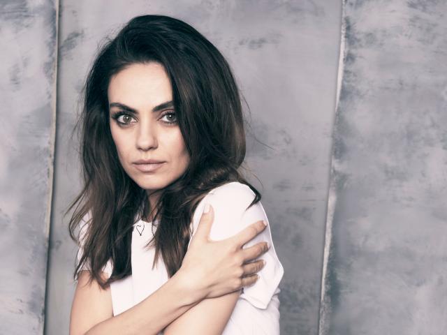 Обои Нежная девушка, актриса Мила Кунис на сером фоне