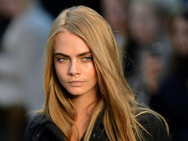 Обои Актриса, блондинка Кара Делевинь с задумчивым взглядом