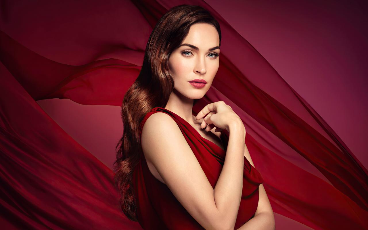 Обои Американская актриса Меган Фокс на красном фоне