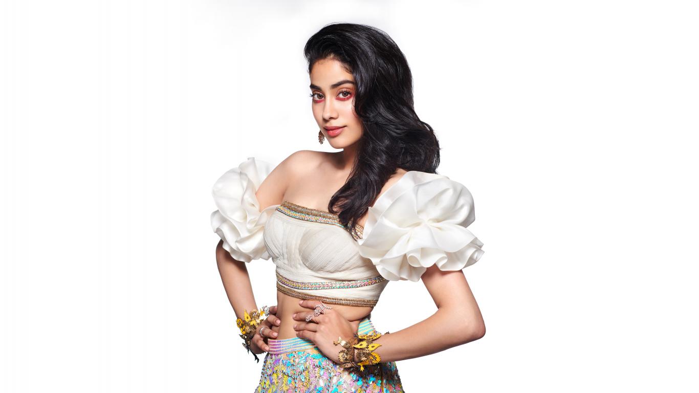 Обои Милая девушка, актриса болливуда Джанви Капур на белом фоне