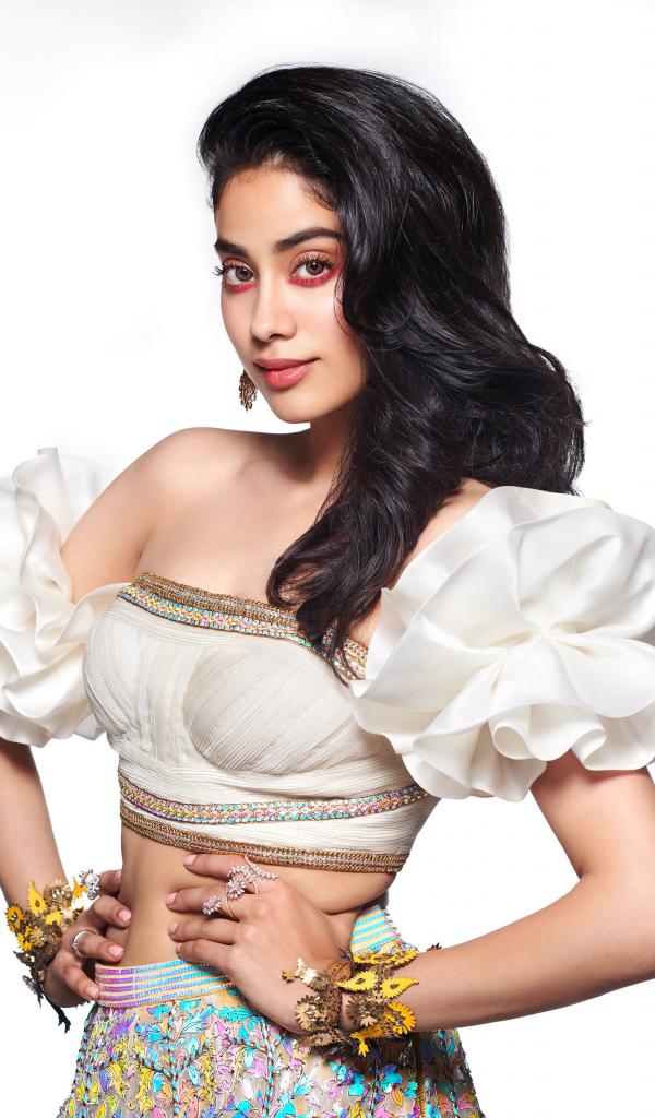 Обои Милая девушка, актриса болливуда Джанви Капур на белом фоне