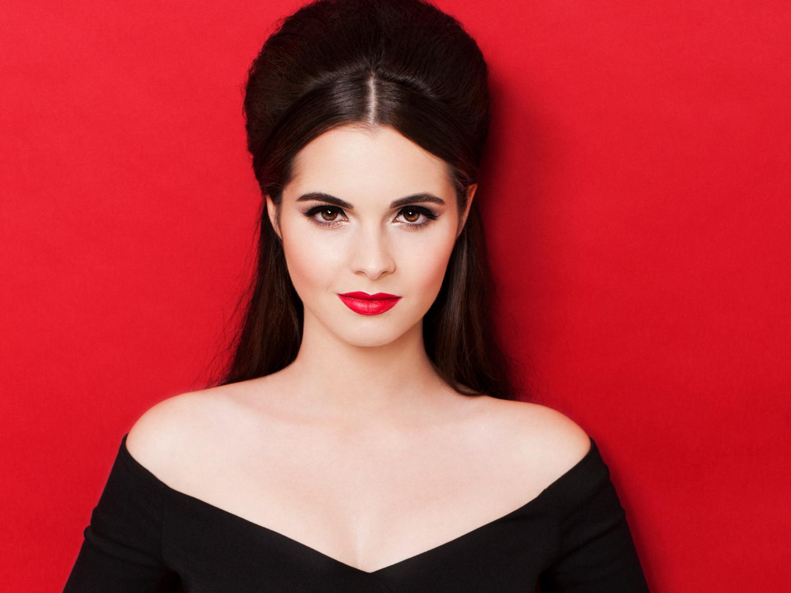 Обои Молодая американская актриса Ванесса Марано на красном фоне
