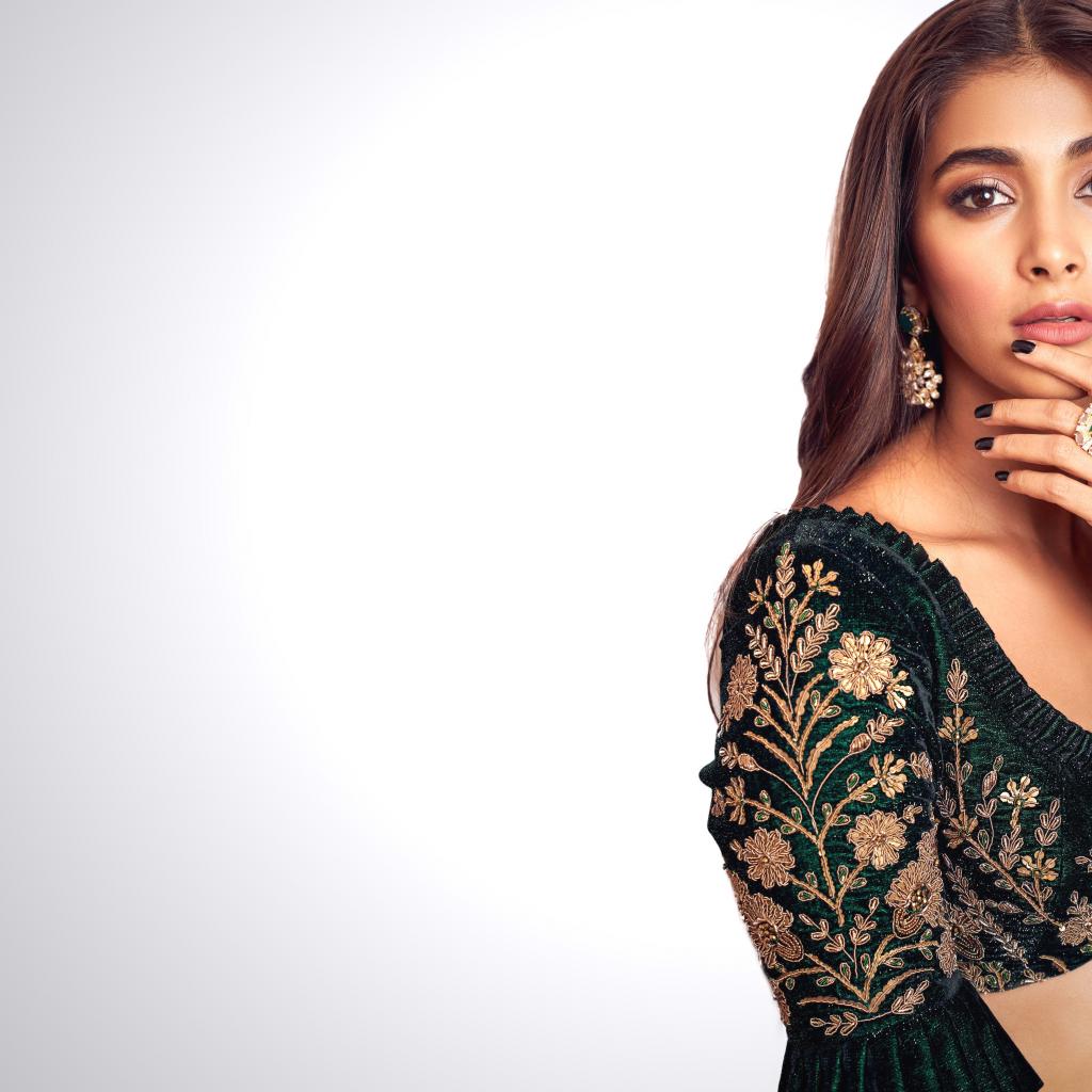 Обои Индийская актриса Пуджа Хегде в красивом сари