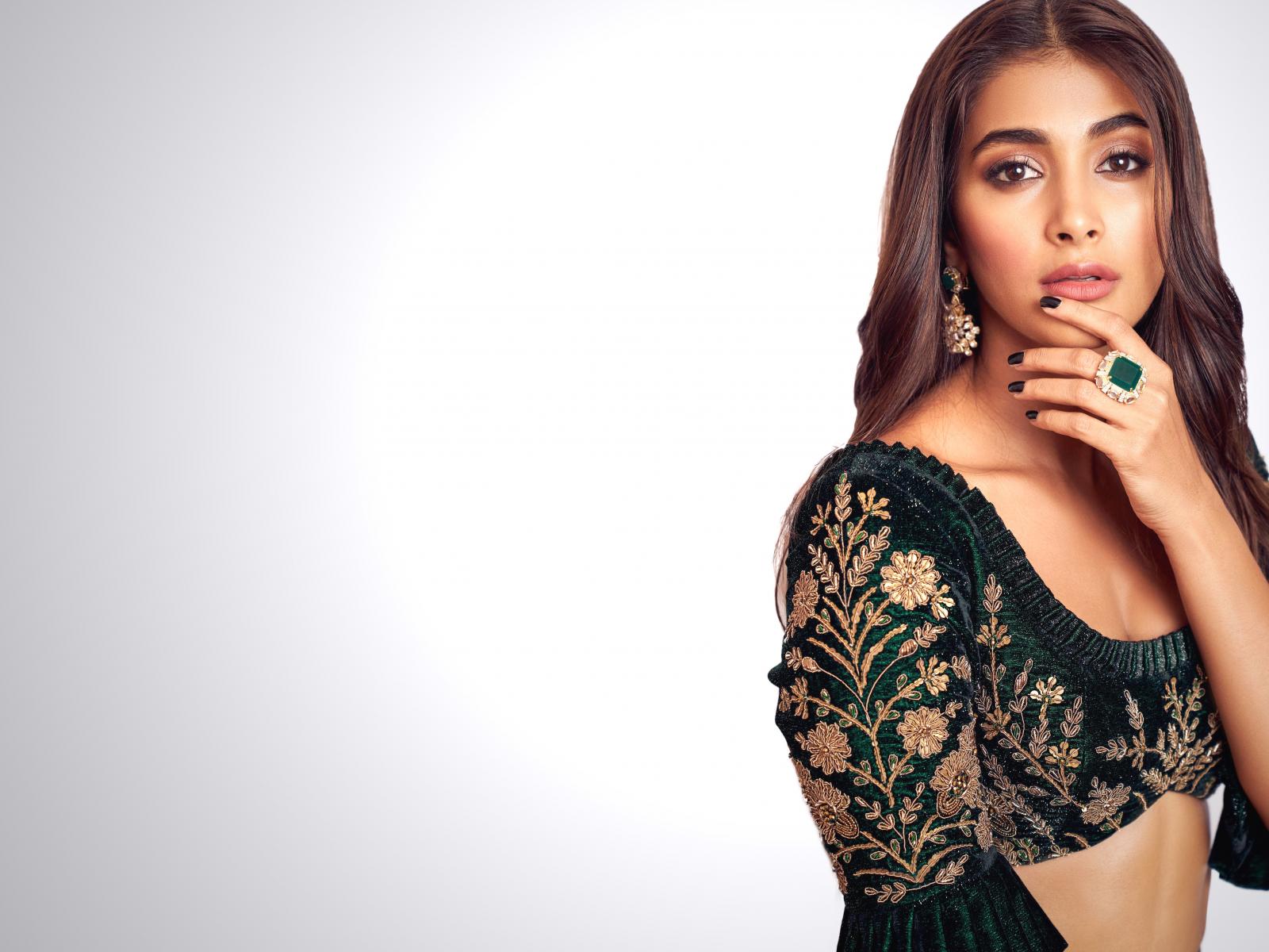 Обои Индийская актриса Пуджа Хегде в красивом сари