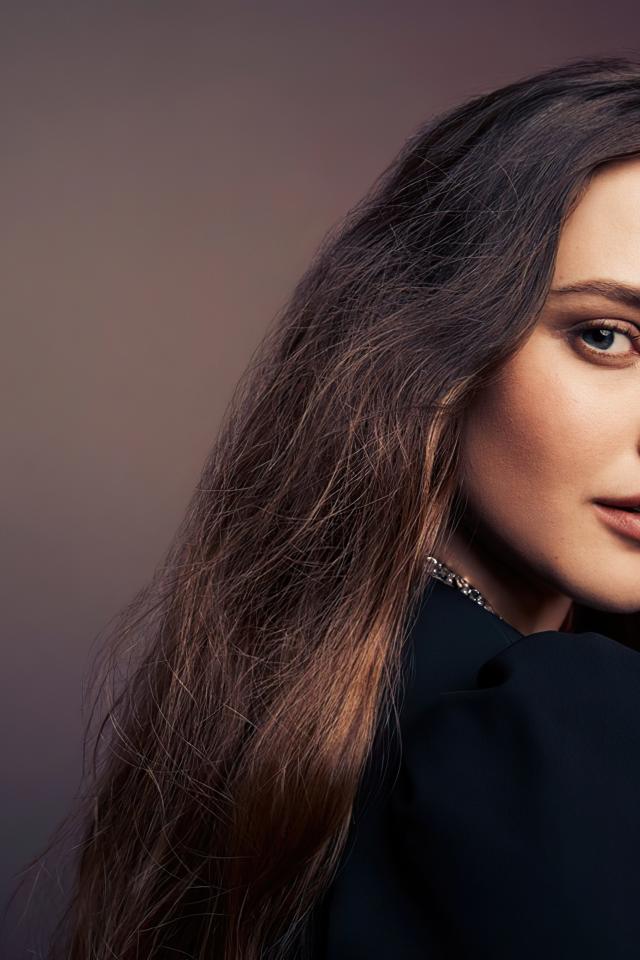 Обои Длинноволосая девушка, актриса Кэтрин Лэнгфорд в черном платье