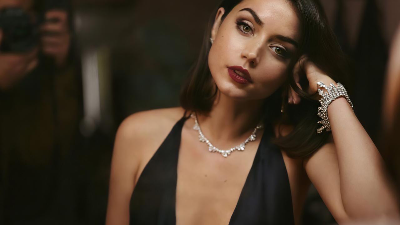 Обои Кареглазая актриса Ана Де Армас в черном платье