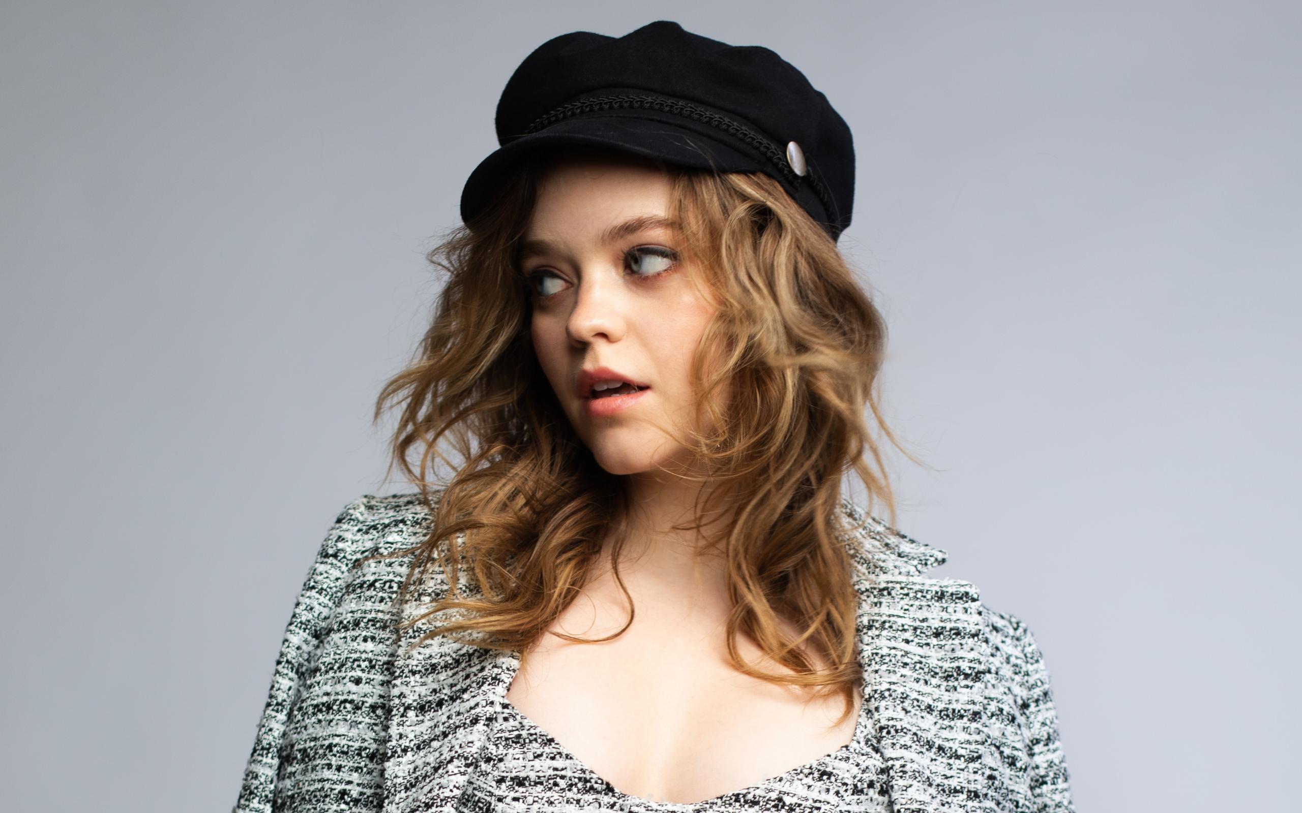 Обои Актриса Джэйд Петтиджон смотрит в сторону на сером фоне