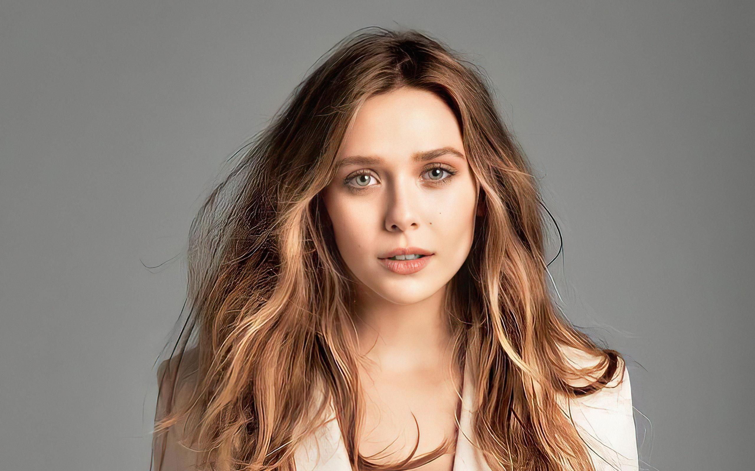 Обои Выразительный взгляд актрисы Элизабет Олсен на сером фоне