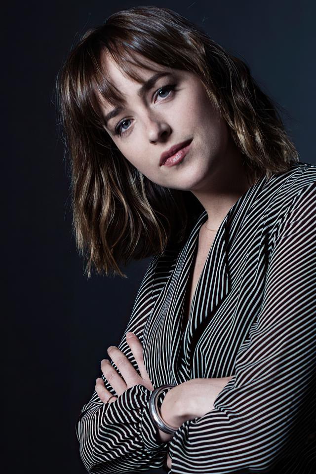 Обои Красивая актриса Дакота Джонсон в полосатой рубашке