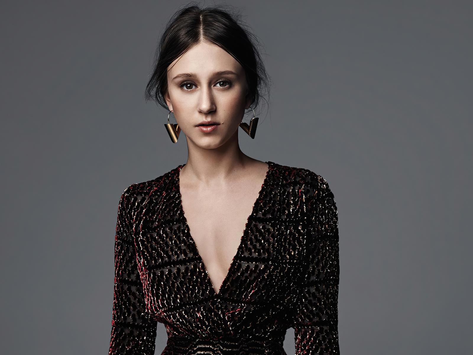 Обои Молодая девушка, американская актриса Таисса Фармига на сером фоне