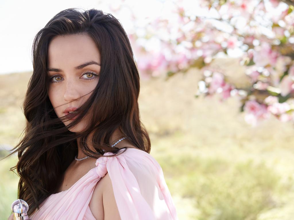 Обои Нежная девушка, актриса Ана де Армас в розовом платье