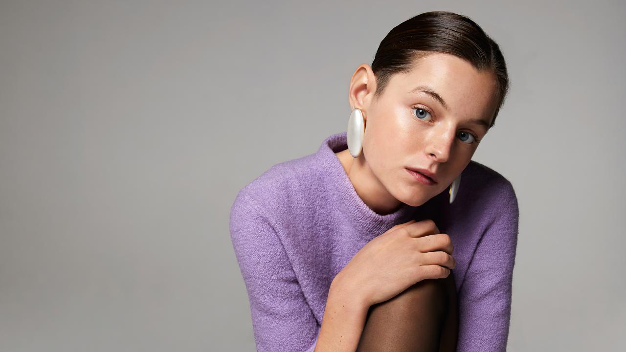 Обои Английская актриса Эмма Коррин на сером фоне
