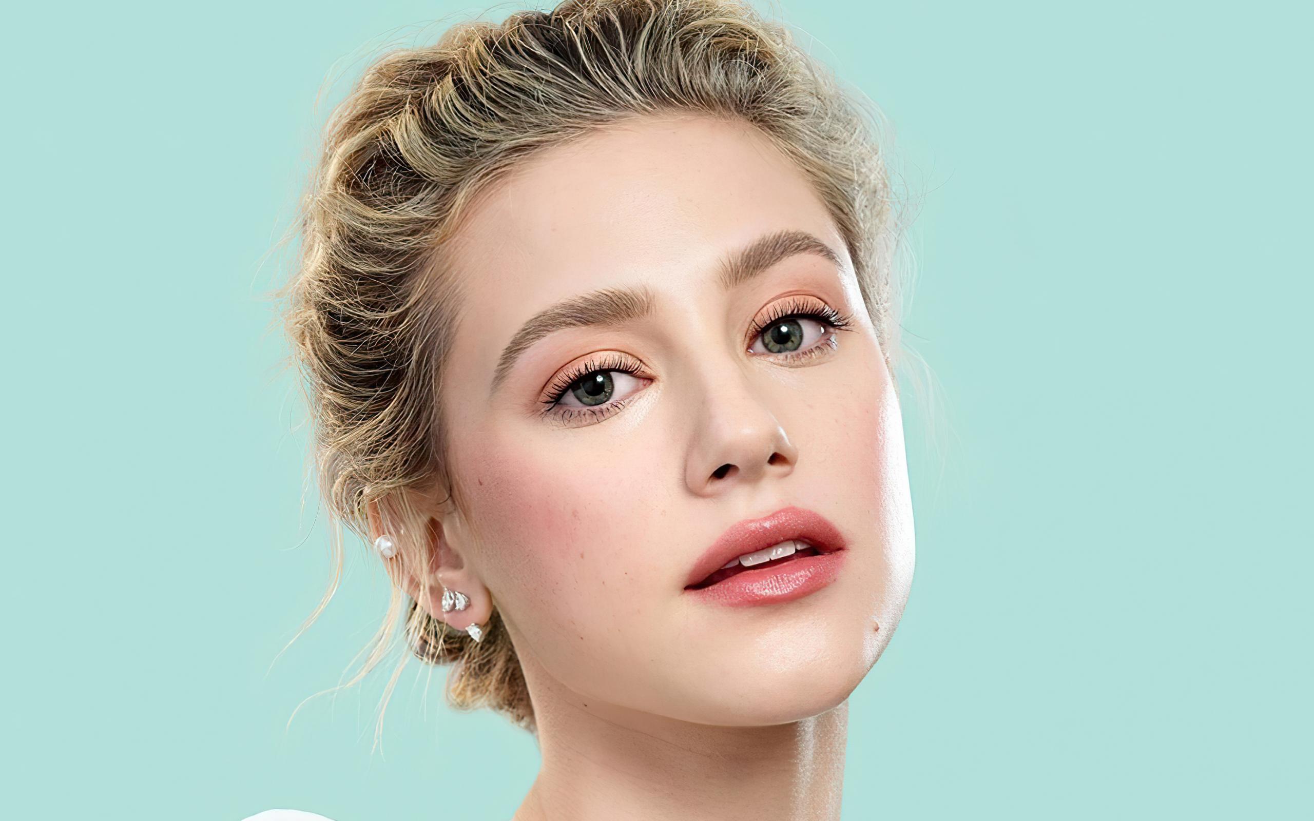 Обои Лицо актрисы Лили Рейнхарт на голубом фоне