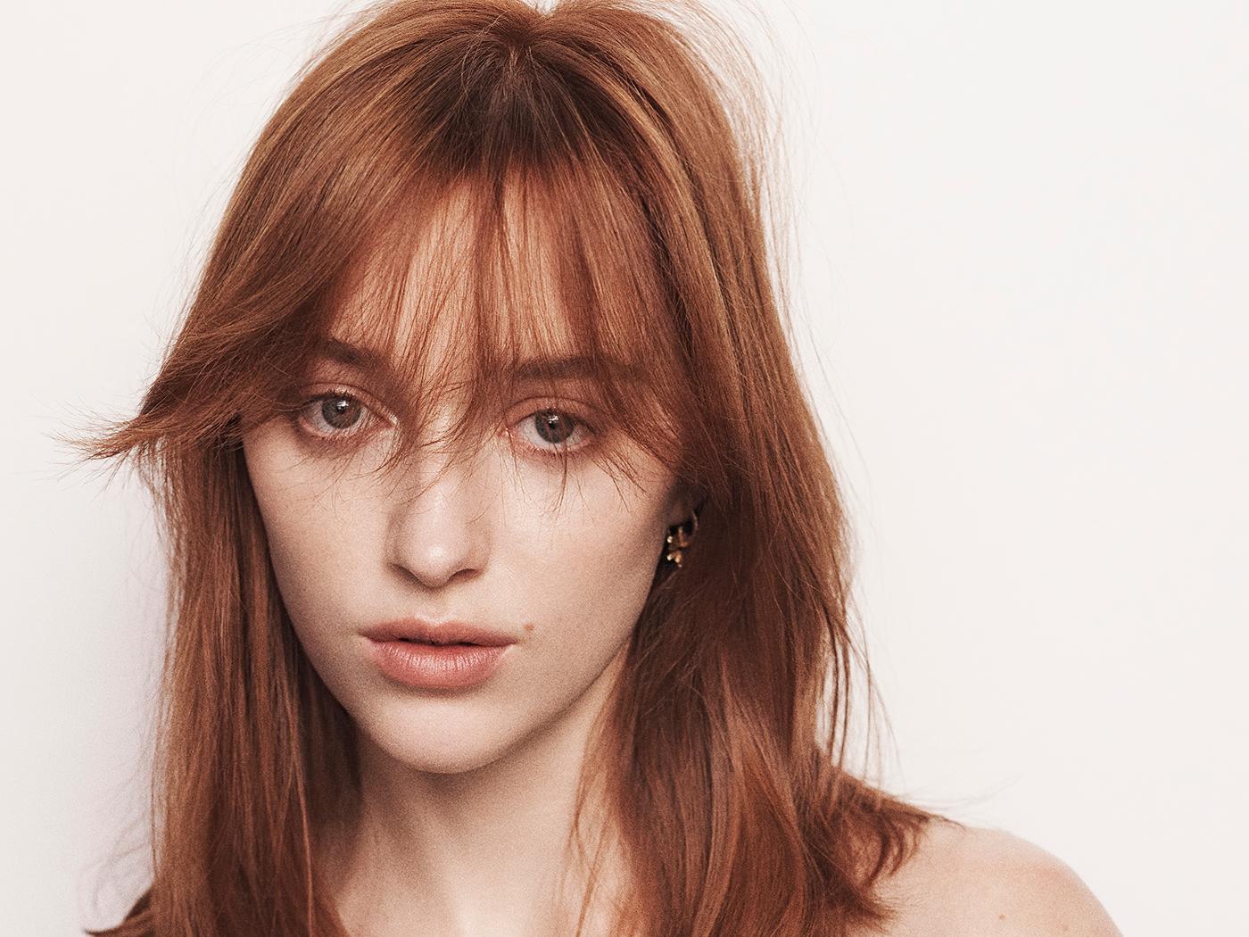 Обои Рыжеволосая актриса Фиби Дайневор на белом фоне