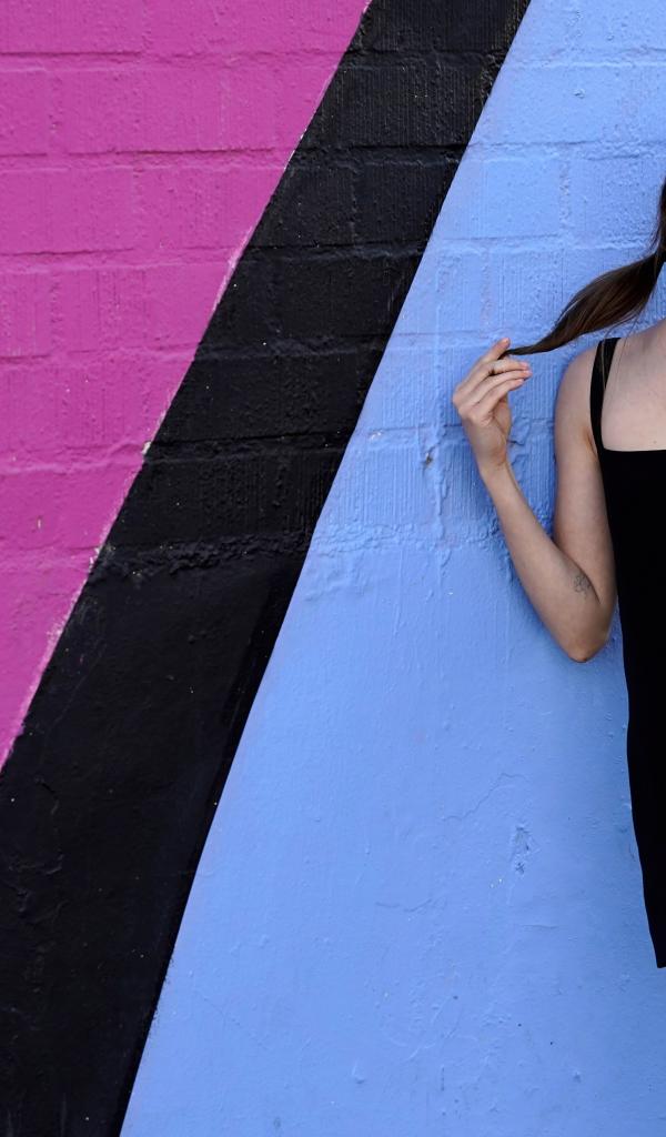 Обои Милая девушка актриса Сиэра Браво у разноцветной стены