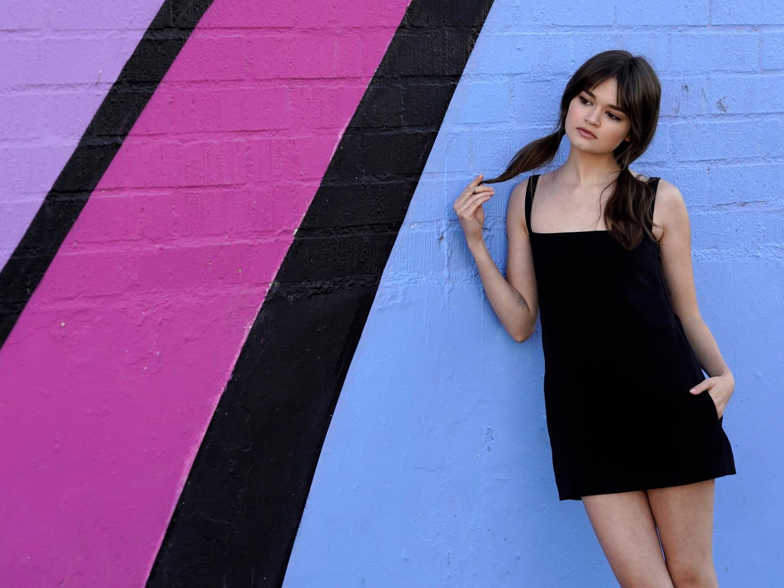 Обои Милая девушка актриса Сиэра Браво у разноцветной стены