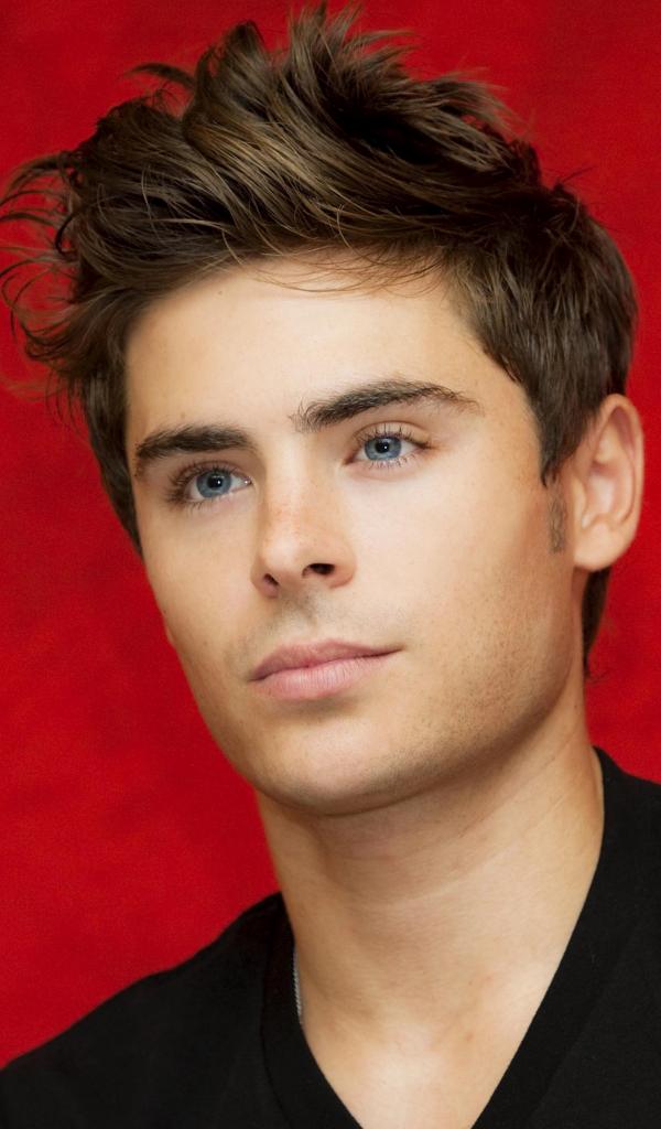 Обои Голубоглазый актер Зак Эфрон на красном фоне