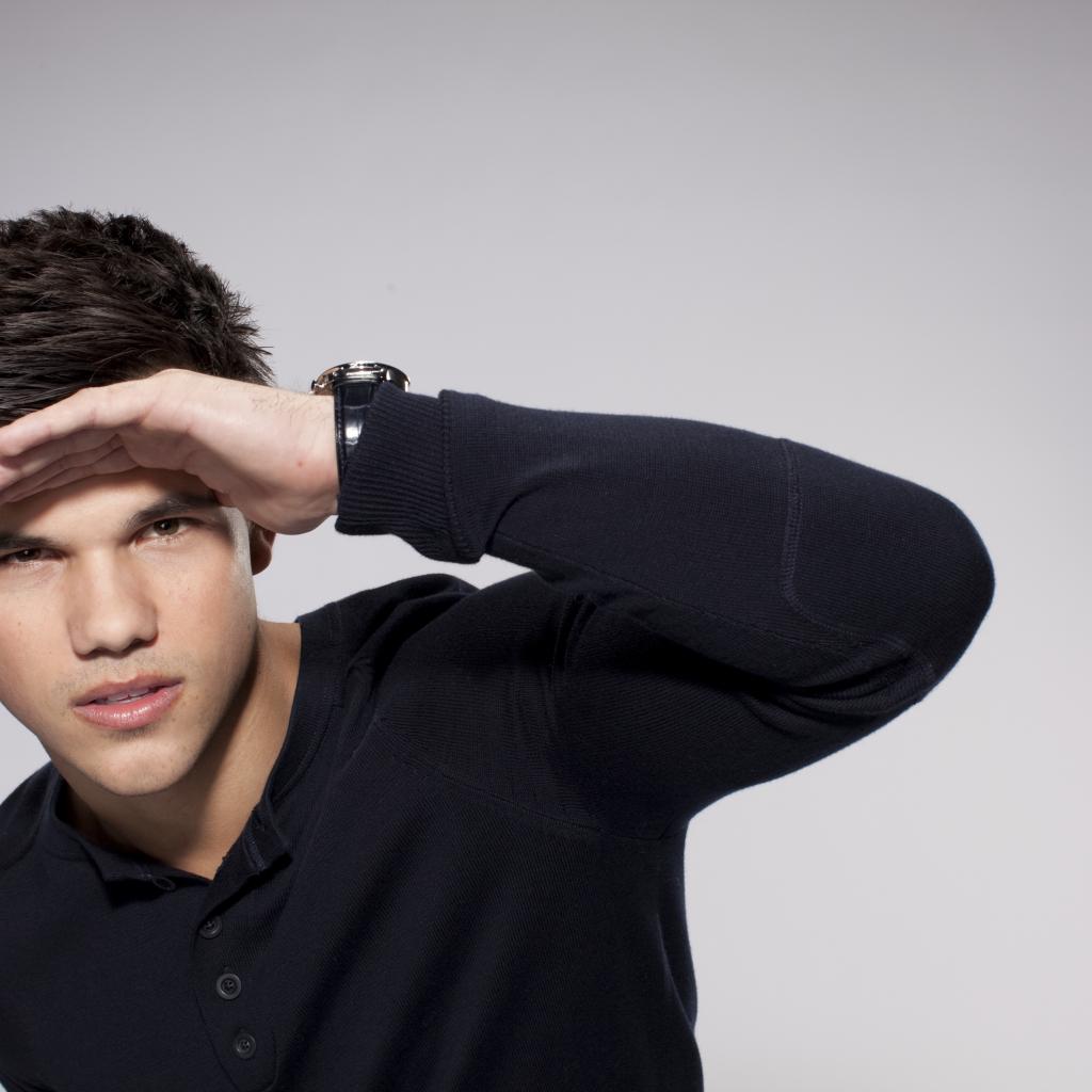Обои Красивый парень, актер Тейлор Лотнер на сером фоне