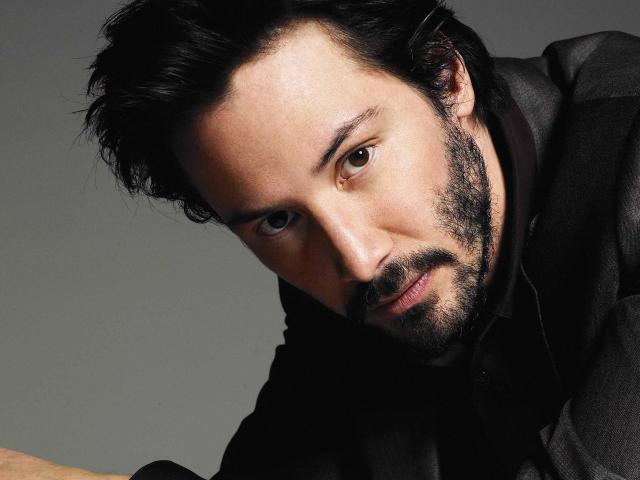 Обои Актер Киану Ривз в костюме на сером фоне
