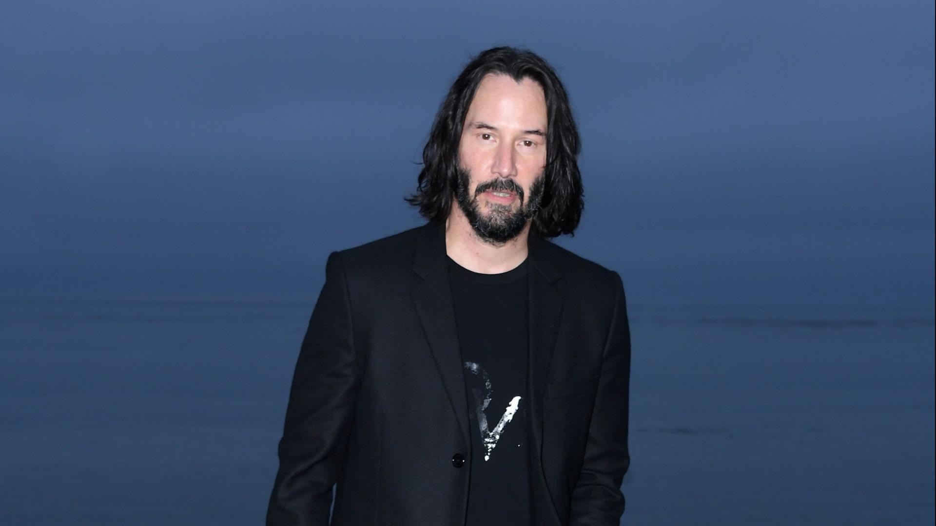 Обои Актер Киану Ривз с бородой на синем фоне