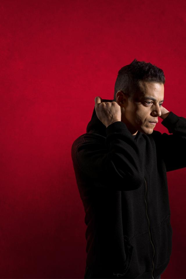 Обои Актер Рами Малек на красном фоне