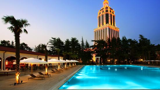 Обои Вечерний вид на бассейн у гостиницы Шератон Батуми