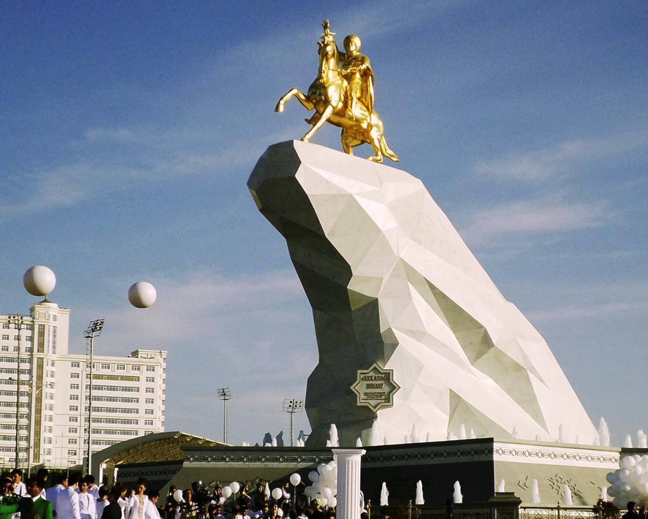 Обои Позолоченный памятник президенту Туркмении город Ашхабад