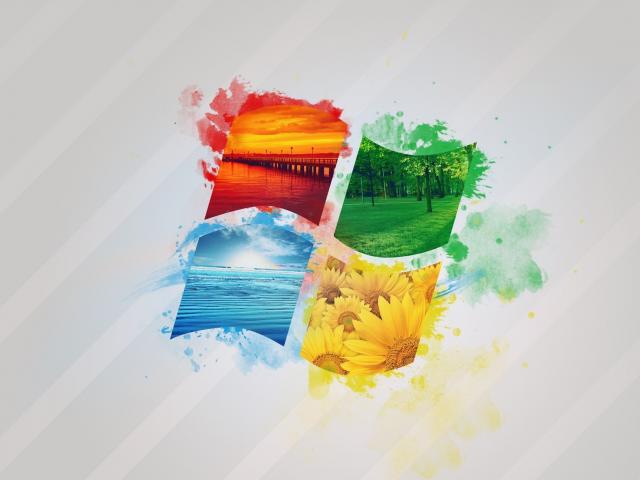 640x480600x1024Обои Значок виндовс времена года на сером фоне