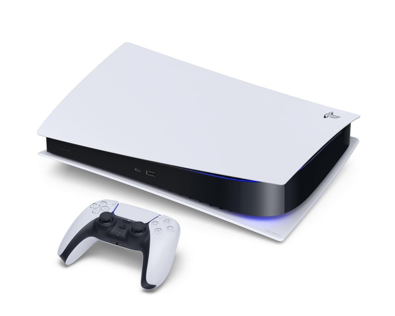 Обои Новая приставка Sony PlayStation 5 на белом фоне
