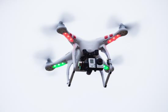 Обои Квадрокоптер с видеокамерой на белом фоне
