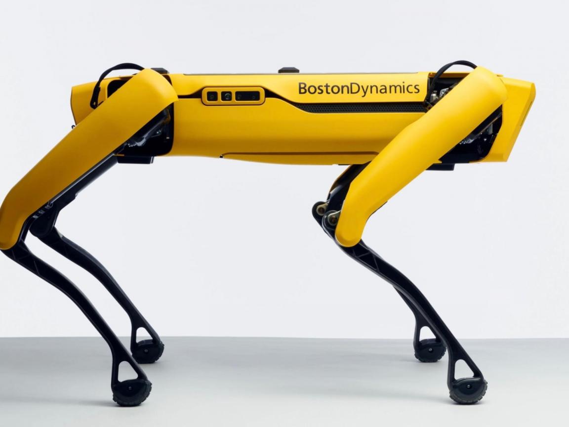 Обои Желтый четвероногий робот Спот на белом фоне